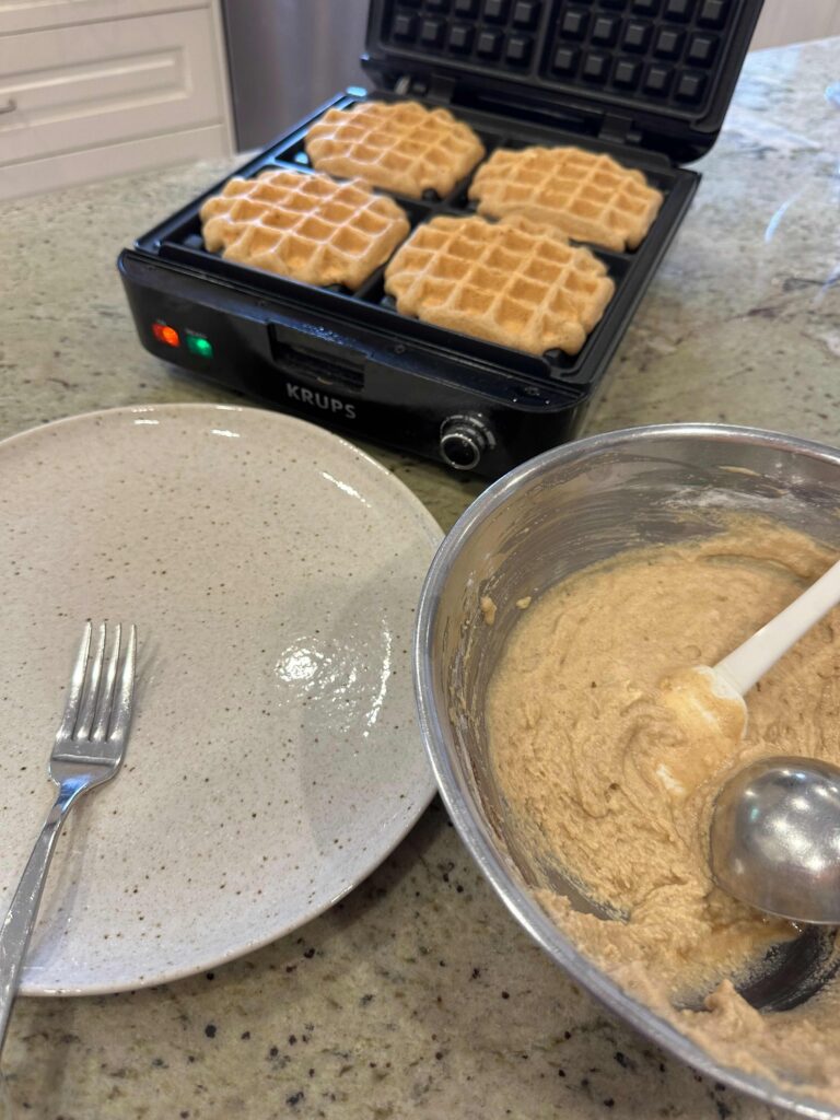 Makes 7 or 8 6″ round waffles
