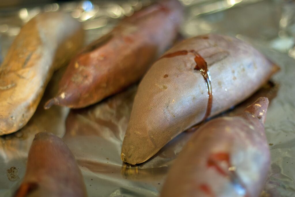 - 2 – 3 medium sized sweet potatoes, baked or microwaved until soft and cooled, skin removed