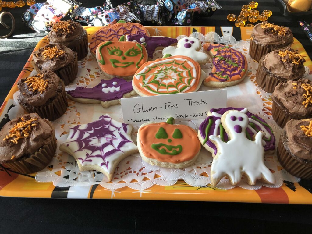 Maybe you are the host and you are getting ready for a ghoulish party. If you need to plan it around one or more gluten-free eaters, you might need some ideas beyond hummus and rice crackers or tortilla chips with guacamole. When you are doing your planning, think about the items that you can’t eat when you are gluten-free: bread, crackers, pretzels, pizza, cookies, cakes and cupcakes, doughnuts. Today, there are many options for all of these items. Of course, if you are the one hosting, you will have much more control. That’s my plan this year; delegation! And, even if you aren’t gluten-free, you can use the ideas below to plan your own party.