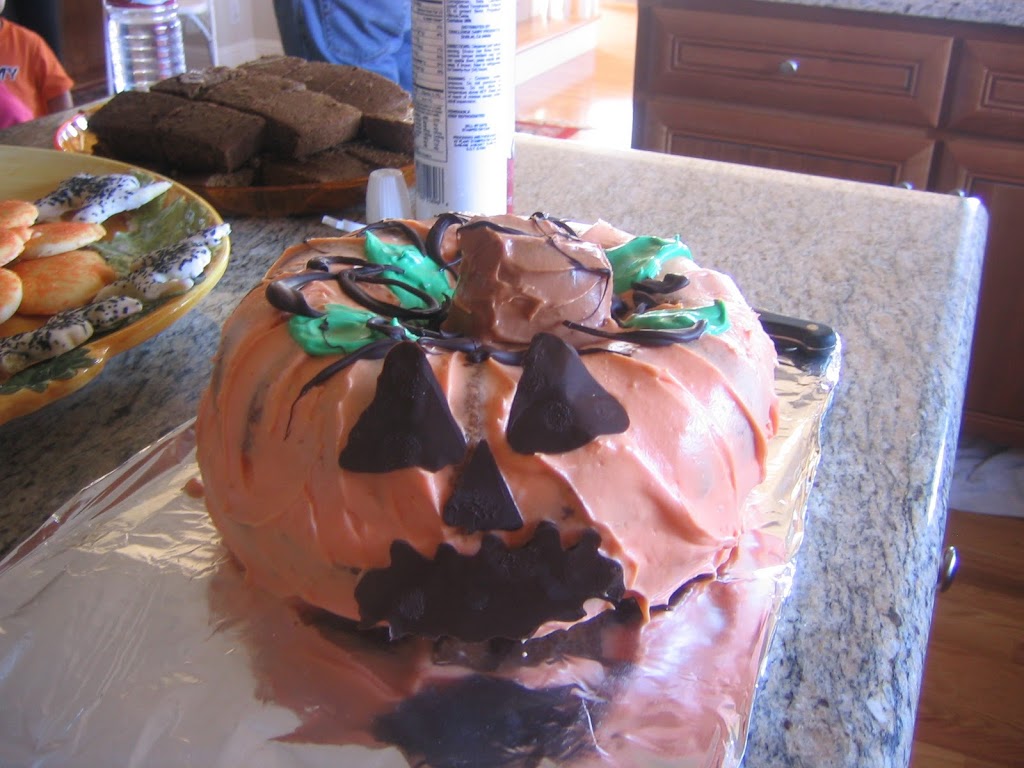 - “Pumpkin” cake (any gf cake baked in a bundt pan; use two for a big crowd and place on top of eachother)