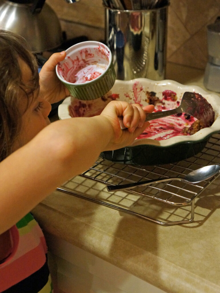 What I love about this recipe is that you can make it all year round. In the summer, there is a bounty of fruit like peaches, apricots, nectarines, and all types of berries. In the winter, you can use apples, pears, and frozen fruit. The recipe is very forgiving as well. You can measure the fruit or just put enough to fill your pan. Use what’s on hand and check the freezer.