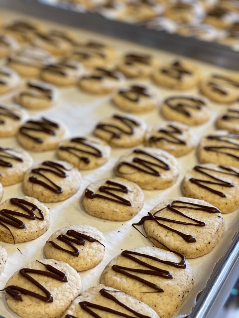 - After you put the dough in the fridge, preheat oven to 325°F. Line 2 baking sheets with parchment paper or silicone baking mats.